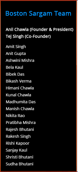 Boston Sargam is proud to present great events for you with the help of group of committee members who have passion, respect for the art and are devoted to making professional production from the planning to the implementation of shows. We also hope to increase the number of opportunities and bring together like-minded artists, choreographers, participants, performers and administrators for presenting great musical/dance events.